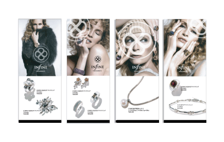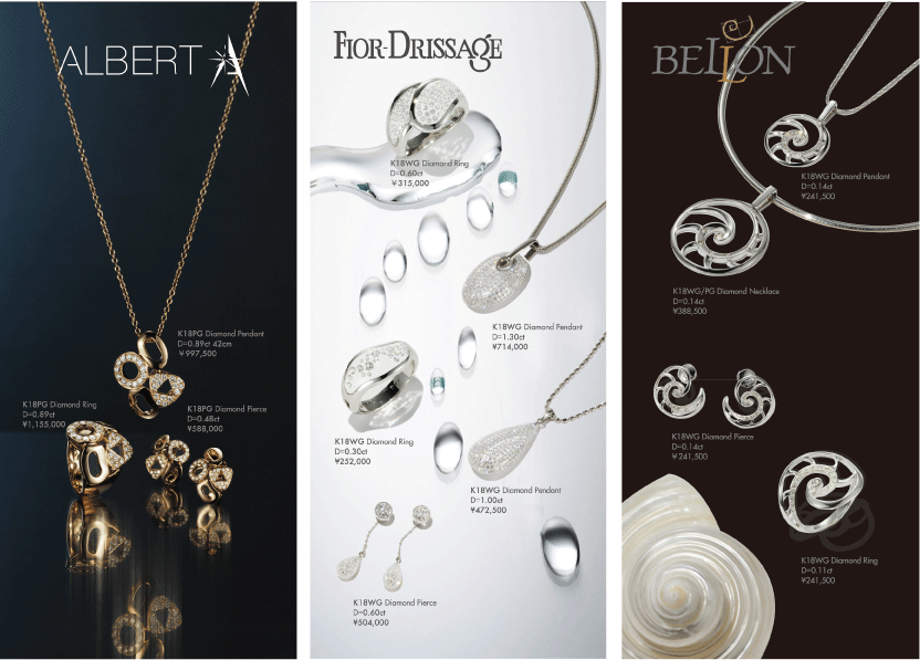 こ冠婚葬祭の真珠からカジュアルなパール・ジュエリーへ。南洋真珠の部材卸業から真珠の宝飾品までを手がけるジュエリ ーメーカーがIJT(International Jewelry Tokyo/会場:東京ビッグサイト)で出展した展示会場ブースのデザイン・施工管理及びキービジュアルの立案、商品カタログ、商品パッケージ、ディスプレイに至るSP総合デザインをプランニング。